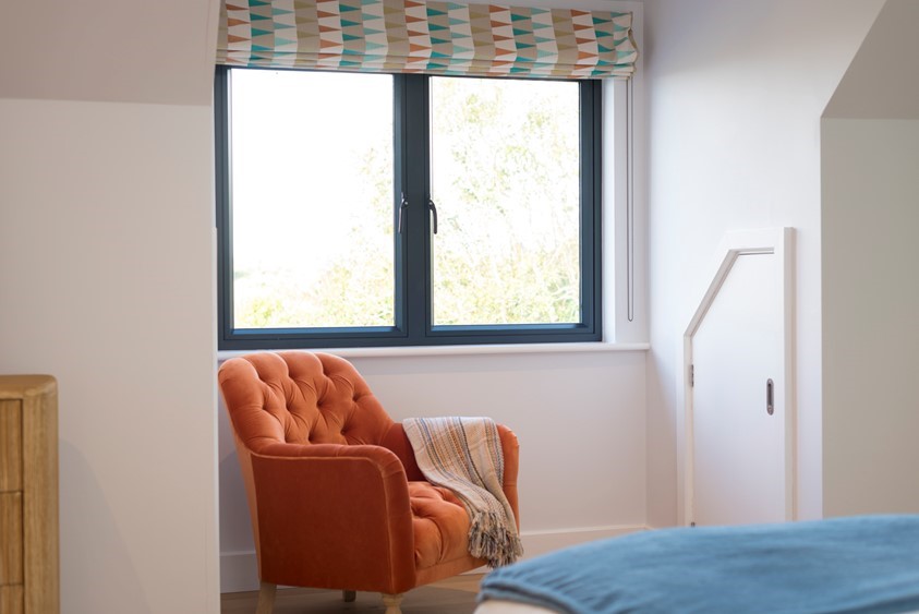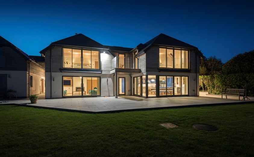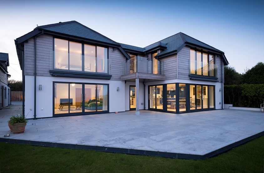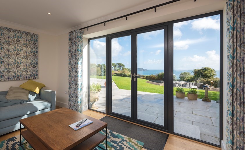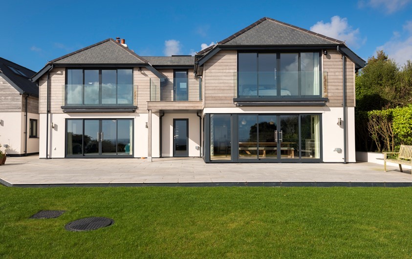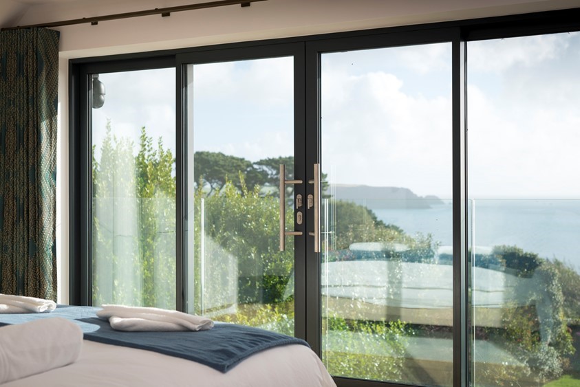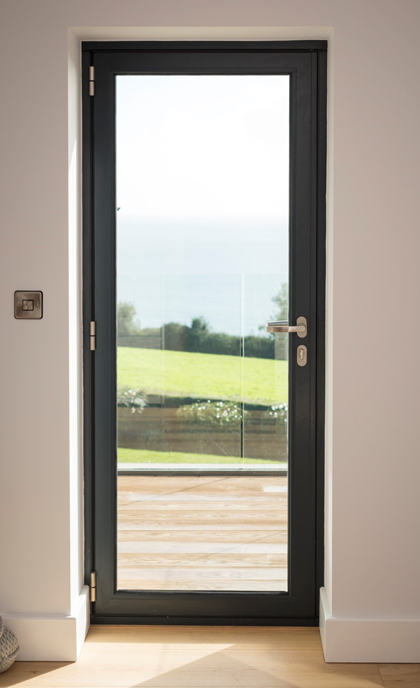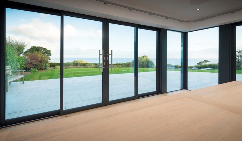 The project prominently features Origin’s OS-44 Sliding Doors, finished in the ever-popular Anthracite Grey (RAL 7016M). Renowned for its ability to provide a sleek, sophisticated contrast against lighter external features, this finish blends effortlessly with the dramatic hues of the coastal backdrop. This timeless choice reflects the homeowner’s vision for an aesthetic that is as striking as it is durable, ensuring enduring appeal for years to come.