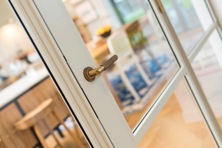 The OI-30 Internal Door is a feature downstairs of the house, brandishing the elegant Signature Knurled Handle in Antique Brass. The handle and hinges are excellent at accentuating the product and creating a harmonious aesethetic across the door set. The Internal Door was selected in this area by the Homeowners to offer the ability to divide the living areas, specifically being able to reduce sound transfer between the areas whilst maintaining an airy feel with the light being able to be shared.