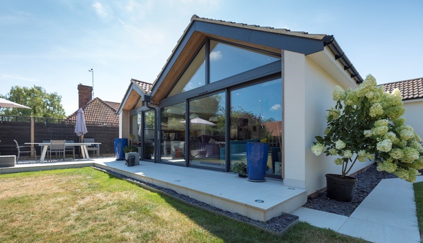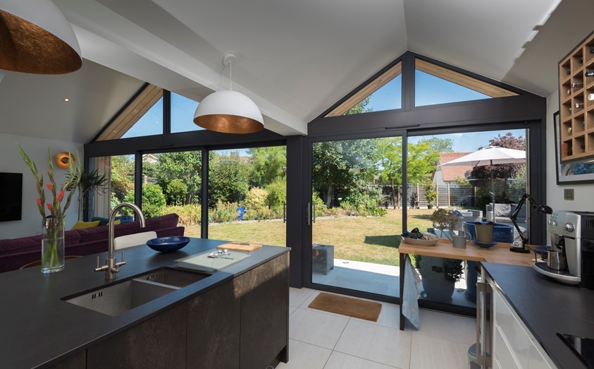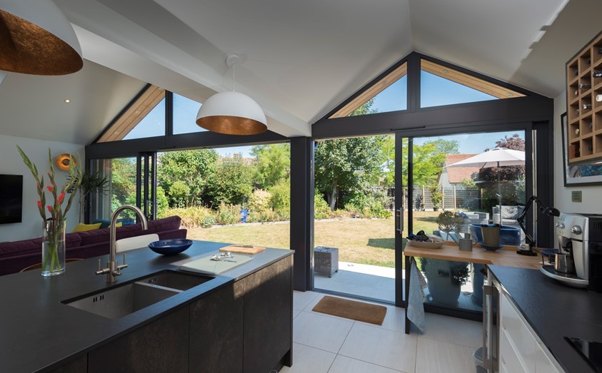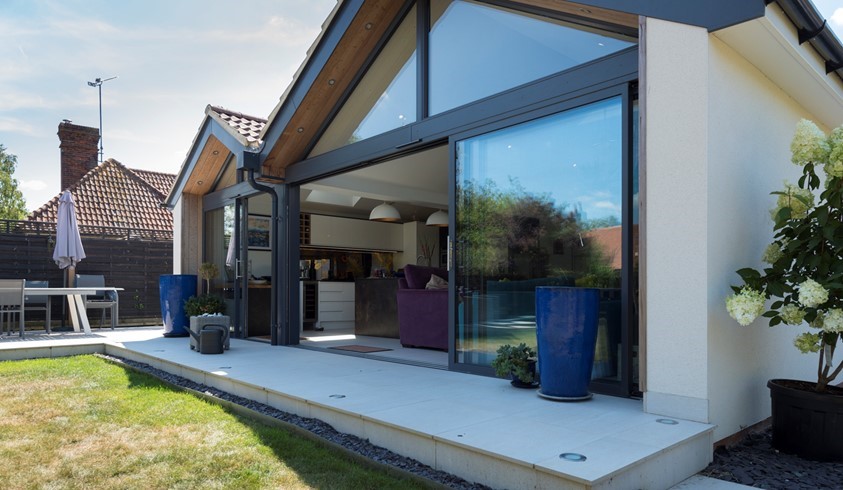 When extending the rear side of this beautiful and unique house, the homeowners scouted the Internet to find Patio Doors that suited their vision. After much consideration and research they chose to specify the Origin Inline Slider range and decided to contact their local installer; Goldseal. Gary, the owner at Goldseal, invited the homeowners to their Showroom in Aylesbury, where they saw the OS-44 slider and knew this would be the ultimate fit for their house.