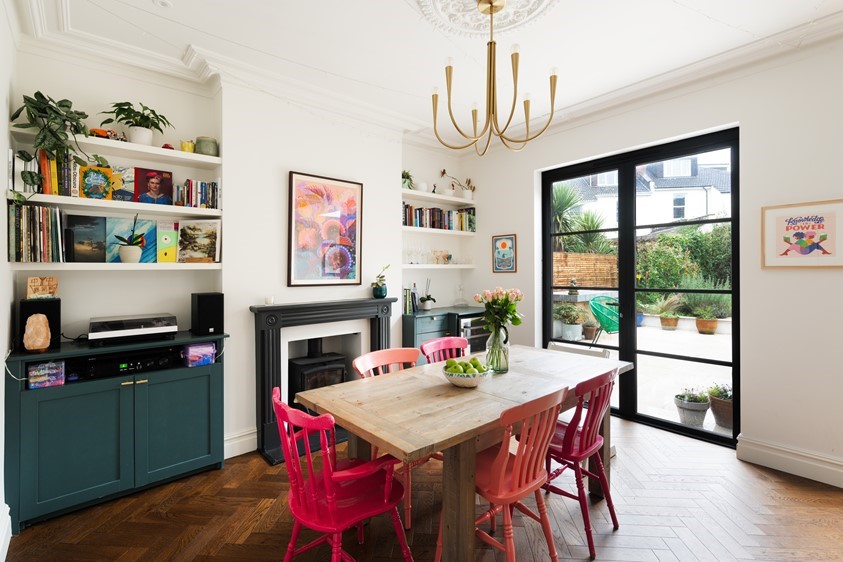 To complement the corner bi-fold, a smaller French door set was installed to the right-hand side of the extension. This provides additional access to the garden and continues the consistent sightlines that tie the new space together.