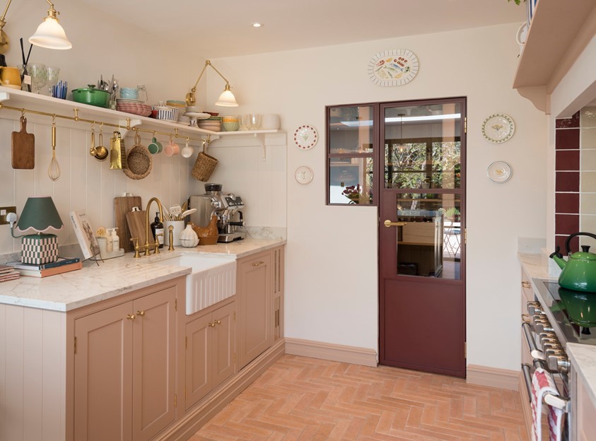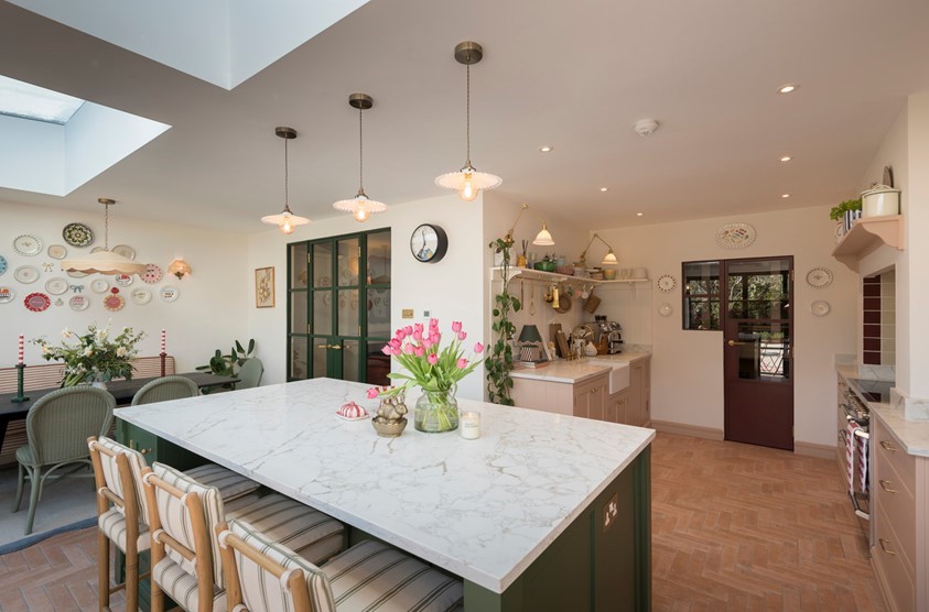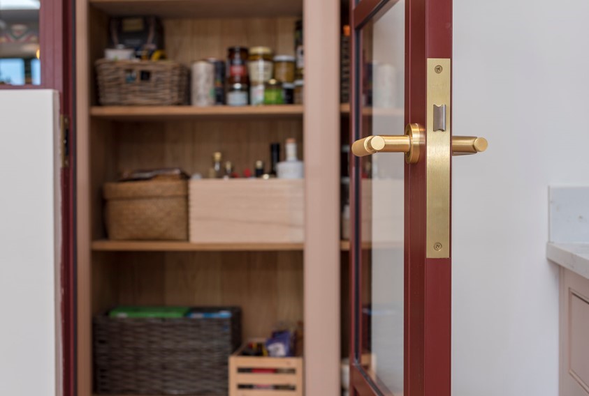 Mo’s choice of RAL 6020M Chrome Green for both internal and external doors perfectly compliment his broader palette; from the kitchen island to the guttering and roof tiles, what might have felt like a daring hue instead becomes a subtle thread linking inside and out. In the kitchen, the RAL 3011M Brown Red pantry door makes its own confident statement. It enhances the existing scheme and mirrors the earthy warmth of the burnt-red tiles, a perfect example of colour theory at its finest.