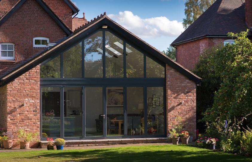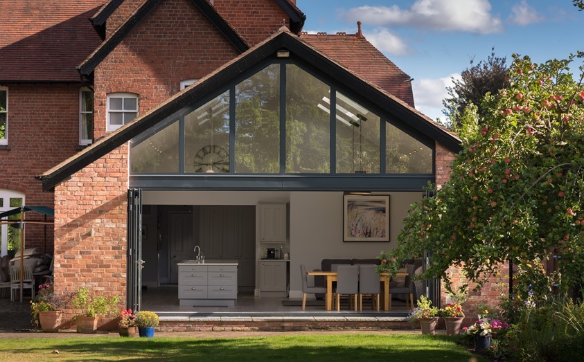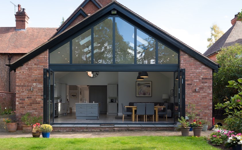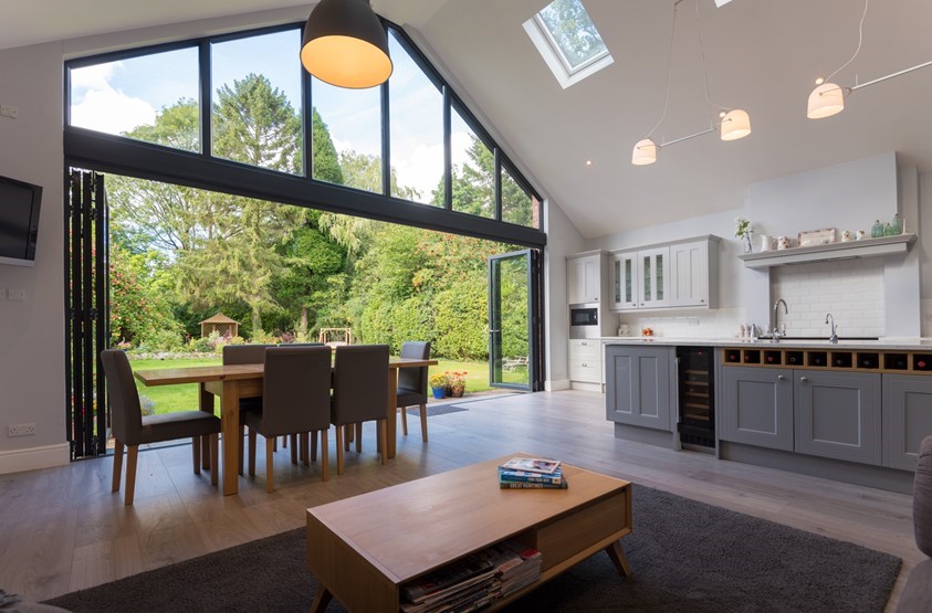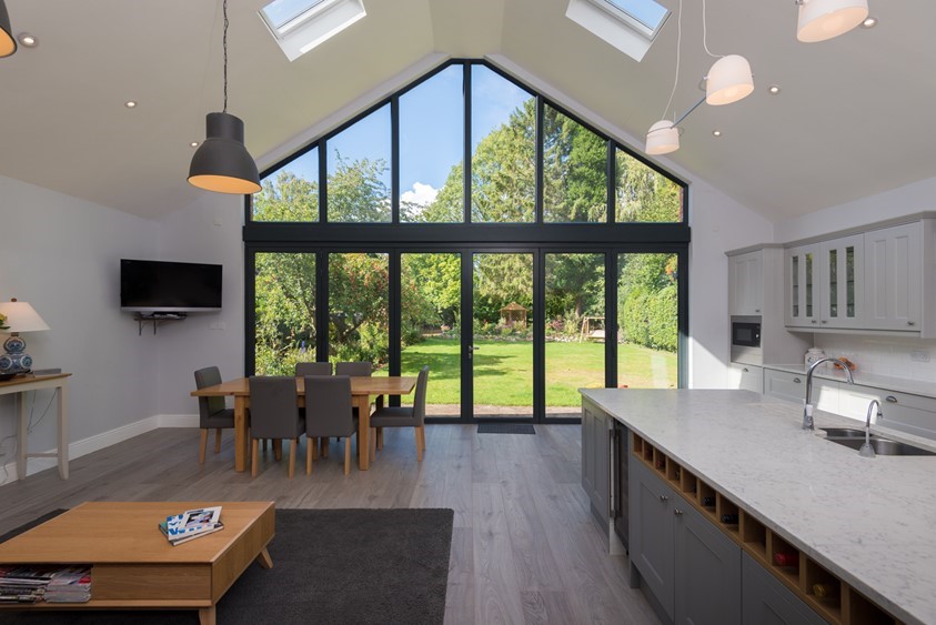 The high levels of thermal efficiency offered by both the bi-fold doors and gable window – combined with a brand new well-insulated extension – meant that double glazing (rather than triple) would be more than sufficient, with the level of sunlight coming through, to keep the home at just the right temperature.