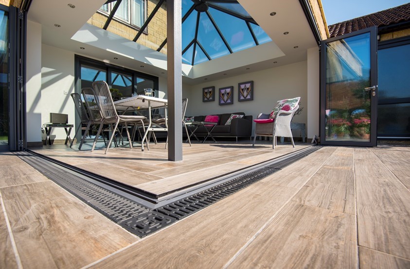Considering the dominant nature of a corner bi-folding door, Jim made securing hisOrigin Corner Bi-fold Door a priority. Jim choose a 5+4 configuration with face drainage and in one of Origin’s more popular colours (a slate grey, RAL 7015).