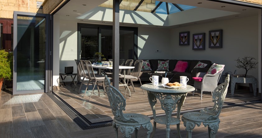 Inspired by the colour of his bi-folding doors, Ji then decorated the orangery interior to match. To complete that inside/outside feel and enhance the wow factor, he also cleverly matched the interior and exterior flooring, creating an illusion of one single floor. All Jim's visitors love the great quality and easy operation of his new bi-folds.