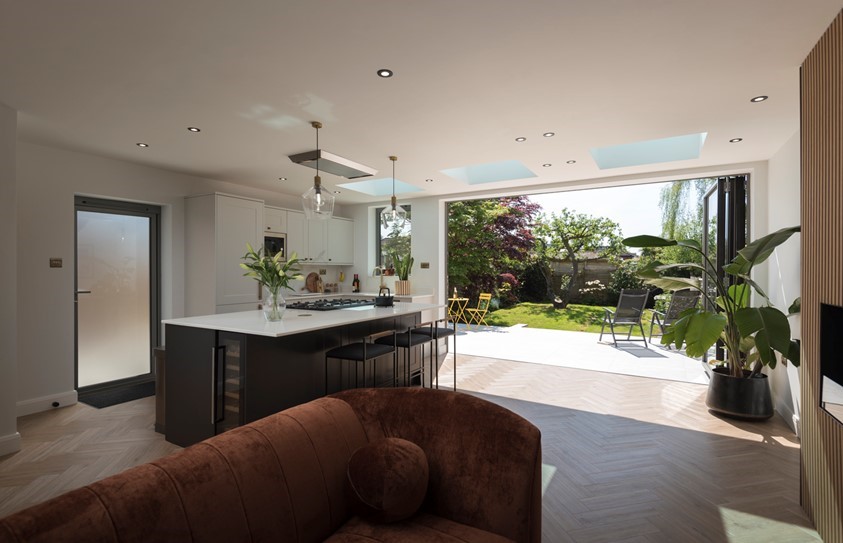 “We’ve gone from a traditional box kitchen and small dining room to a large, open-plan space. The bifolds open fully and link the kitchen directly to the patio… it's completely changed how we live and entertain.”