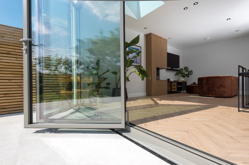 “The bifolds have been a talking point. Because they’re taller than standard, it gives the whole room a floor-to-ceiling glass effect.”