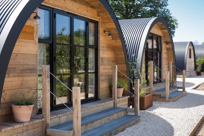 Inside the lodges, the OB-36+ doors create a seamless flow between the interiors and the landscaped surroundings, ensuring that natural light and countryside views form the backdrop to every stay. The slim steel-look sightlines provide a boutique finish in keeping with Silchester Farm’s high standards for weddings and private events.
