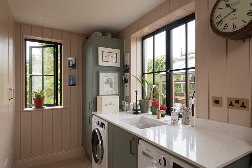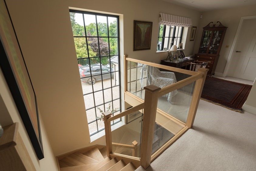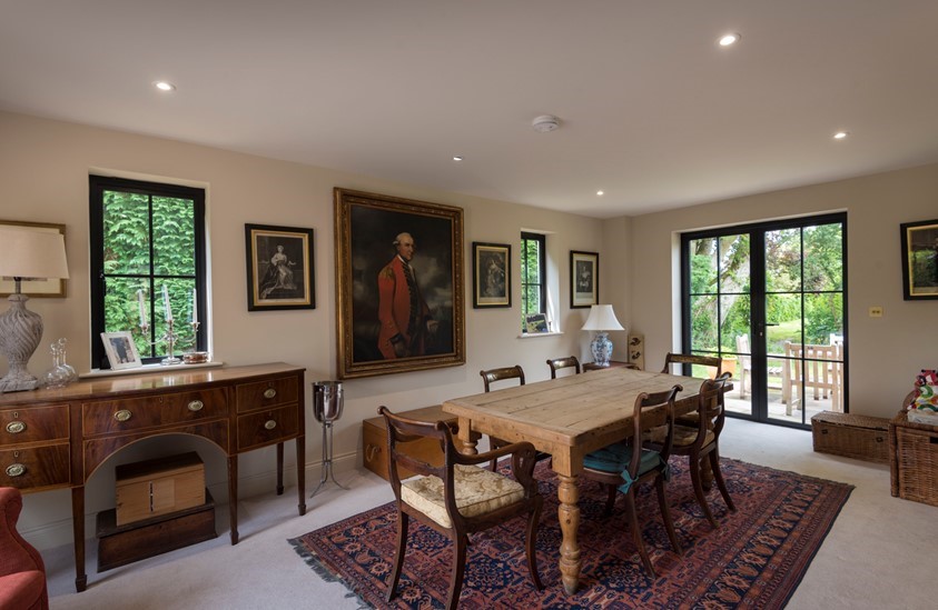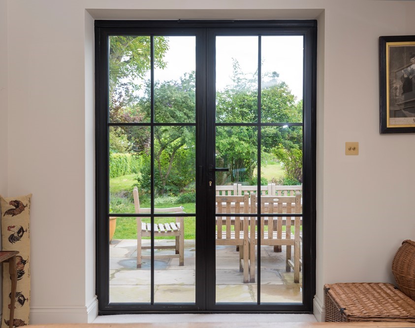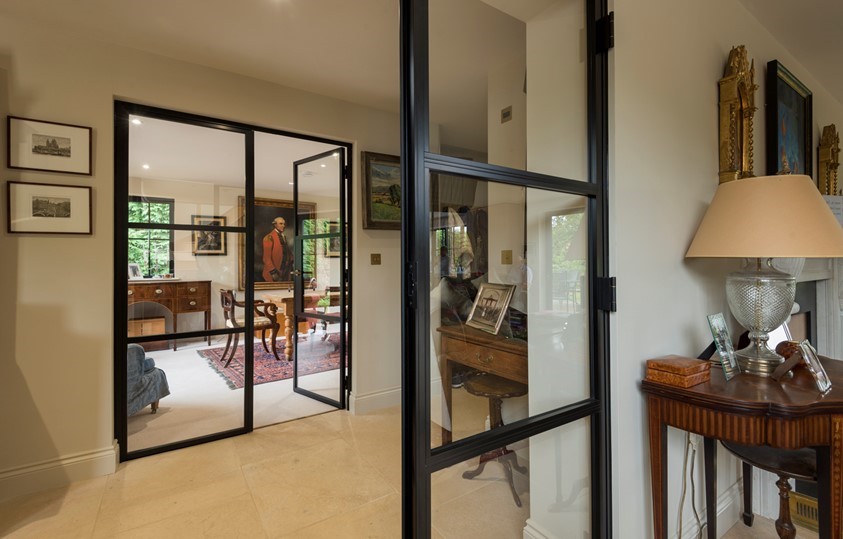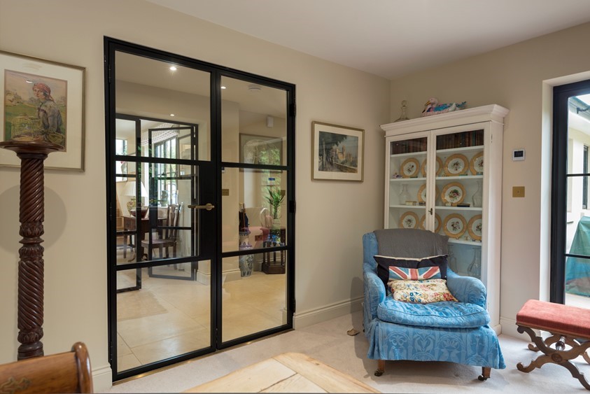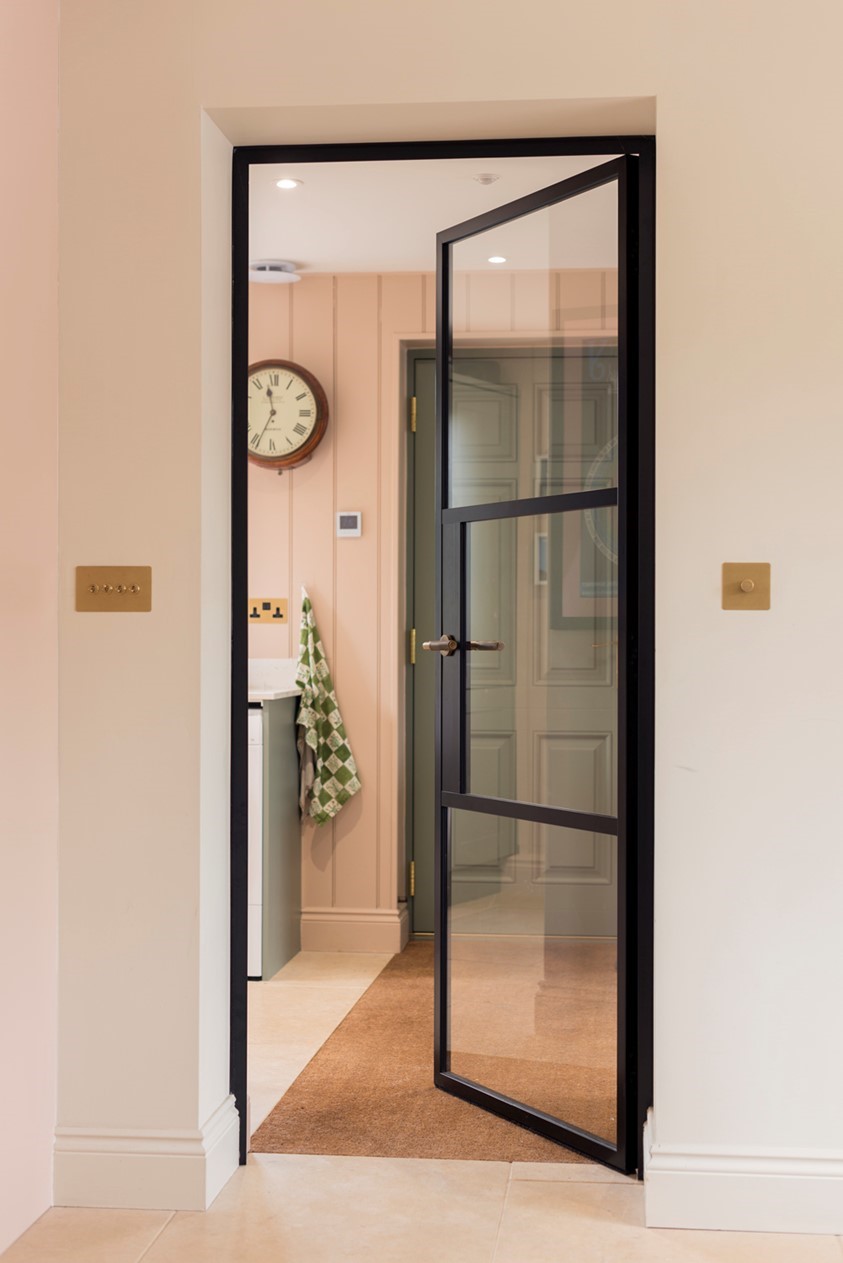 Internally, OI-30 steel-look glazed doors were fitted to divide living spaces while still allowing light to flow through. These doors were finished with antique brass handles, a choice that has become a particular talking point.