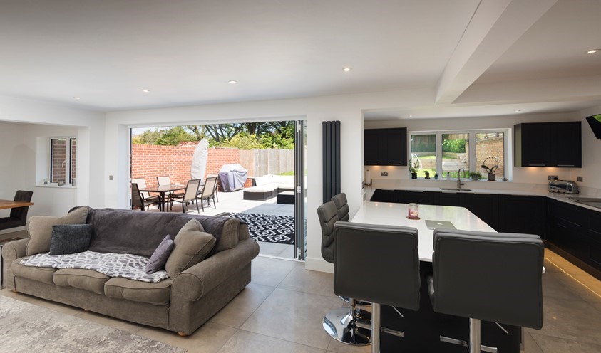 When Dan was drawing up the plans with his Wife, Tania, they had agreed they were going to maintain the colour scheme but wanted to guarantee they could have a bi-folding door between the kitchen area and the garden, to create a seamless opening between indoors and outdoors.