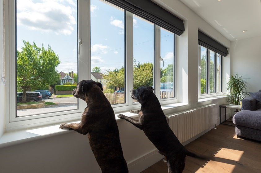 The bi-folds are utilised at every opportunity – any warm day, they are opened from the moment the homeowners are awake. The pair of 4 pane windows at the front of the property used to be a Garage area, which the addition of windows has made the house feel more spacious and allows the four-legged friends to get a view of friends and family before they arrive in the house.