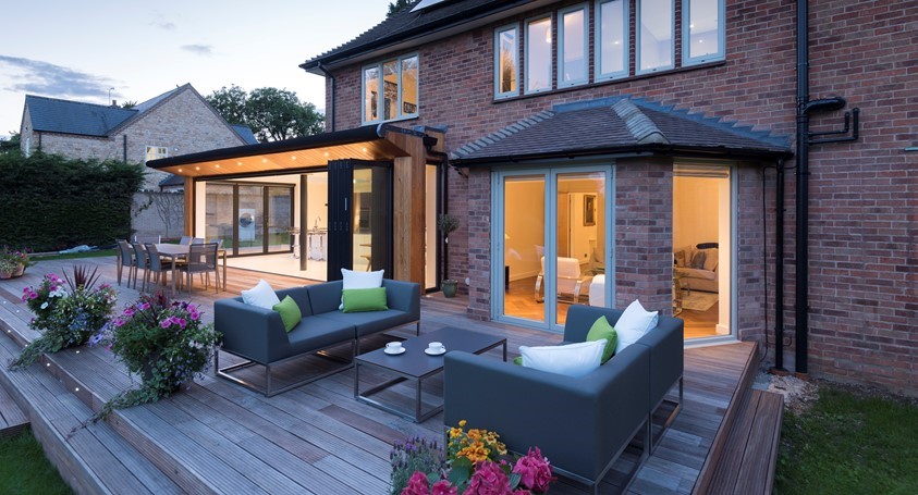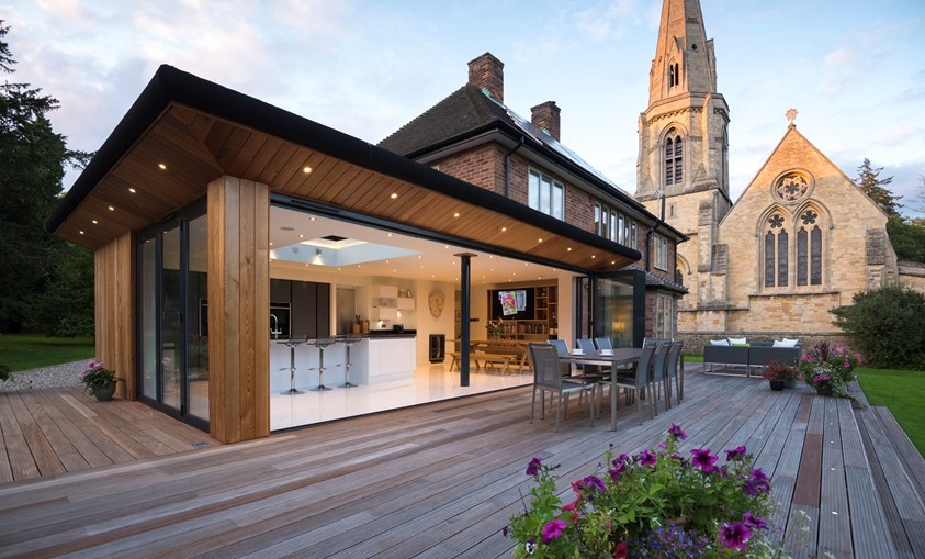 Kitchen extension framed with Bi-folding Doors