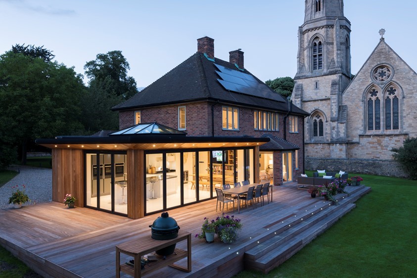 Set against an impressive church background, Jamie wanted something equally as impressive and timeless for his kitchen extension. Completely replacing one of the walls with an 8-door Origin Aluminium Bi-fold set and then a 3-door set on the adjacent wall, Jamie was determined to create the wow-factor that would lend functionality when entertaining guests in the large garden and patio area. To create a contemporary look, the Parrs’ opted for Origin’s Black Grey (7021M RAL), which perfectly frames the carefully considered interior design whilst simultaneously contrasting with the exterior cladding. “The quality of finish and material with the Origin Bi-fold Doors and Windows was exceptional and it influenced our purchase massively”, Jamie says.