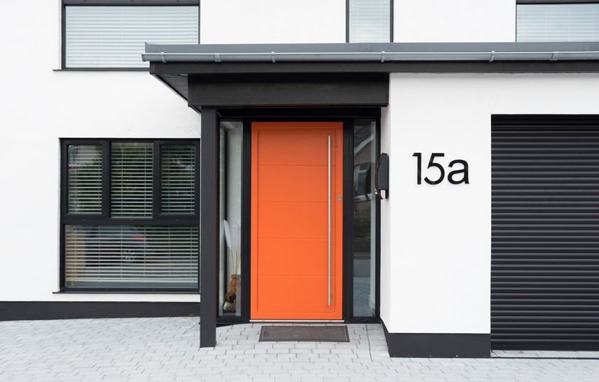 A Prime installation on the Southwest Coast has really made a statement with their striking Orange Origin Front Door. The Front Door is accentuated against the Jet Black OW-80 Origin Windows, creating a wow-factor for everyone to see.
