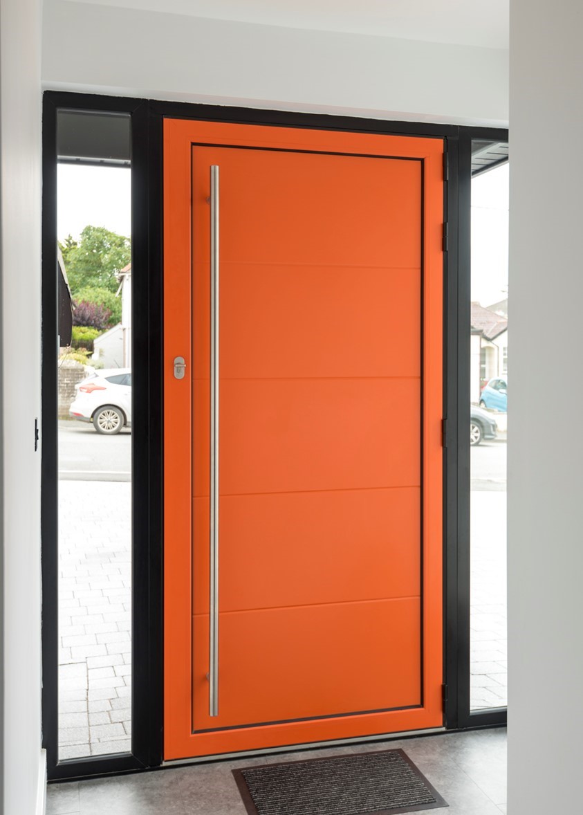 The Panel selected by the homeowner is the SE04 from our Kensington Range, one of our most popular panels over recent years. To complement the beautifully orange SE04 panel is our tallest bar handle, the 1800mm Straight Bar. Other popular panels are the GE01 & TR02, both also in the Kensington Range.