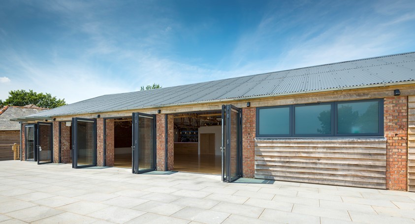 Surrounded by rolling countryside in the heart of Bodmin Moor in Cornwall, a magnificent 5 star wedding venue called The Green Cornwall offers modern rustic barn character, reinforced with Origin Bi-fold and French Doors.