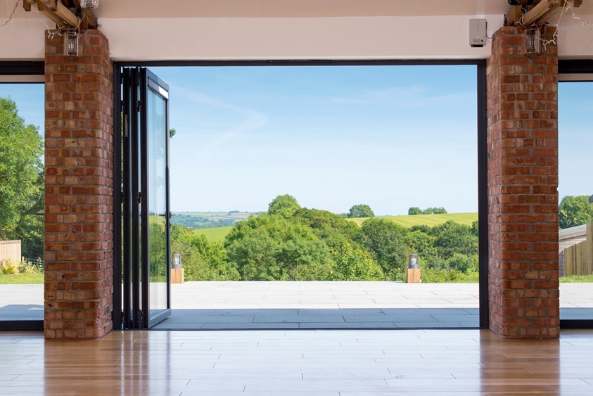 In order to make the most of the stunning scenery offered from the Red Brick Barn, the McDonald’s decided to install aluminium bi-fold doors across the whole length of the building. They didn't want to detract away from the property's natural charm, so they did their research and came to choose Bifold Doors and Windows.