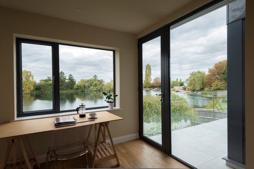 Jim, a publisher of sailing books, had always dreamed of a house on a lake. With the perfect location secured at auction, the homeowner wanted to ensure the design of the home matched its surroundings. Liaising with architects to bring his vision to life, Jim knew he wanted to create, a light, bright and modern space, with the view as it’s vocal point. With plans to install multiple sets of Bi-folds and a large gable to perfectly frame the view, he needed good quality products, he trusted, to be the star of his new build. After researching online, the homeowner came across Origin, impressed with the 20 year guarantee and sleek modern aesthetic, Jim got in touch with his Local Premium Partner, Panoramic Architectural Glazing, and the project was underway.