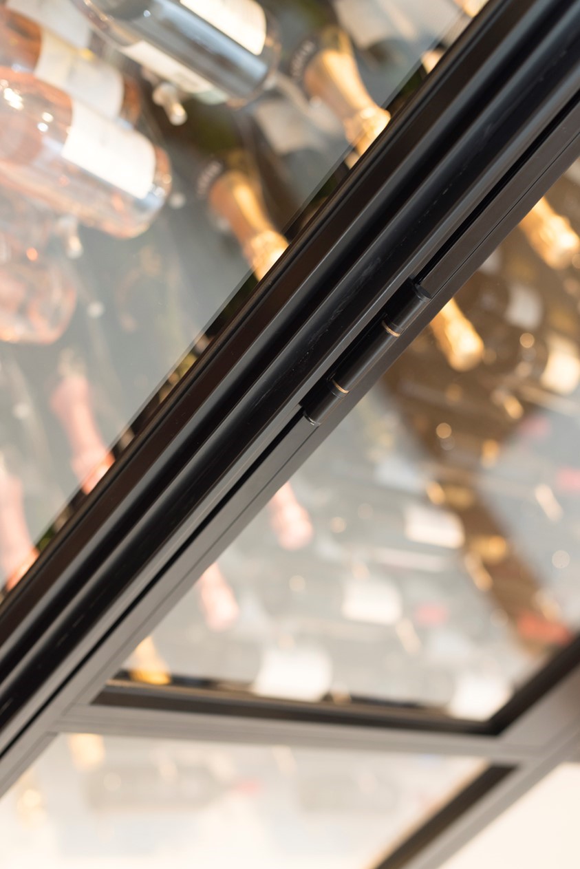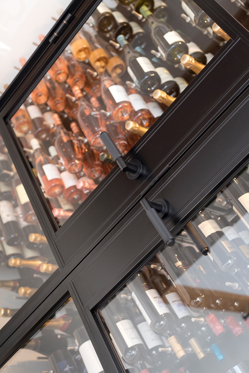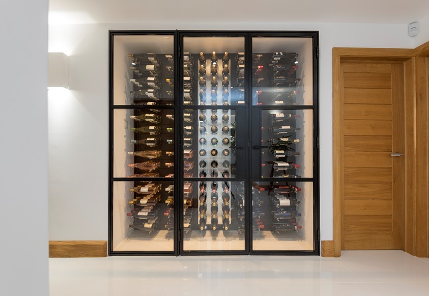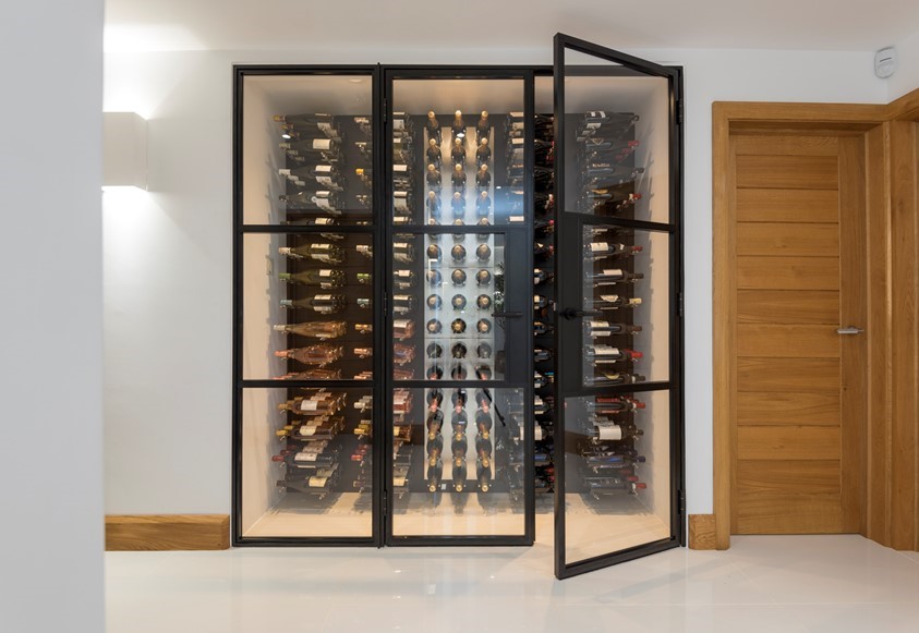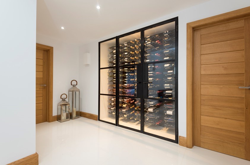 Debs, one of the homeowners, had seen a catalogue of different wine cupboards and storing systems all varying in style but they all had one thing in common – a sleek black casement around them. When enquiring about a handful of potential options, a lot of the companies did not respond, or when they did, the fastest turn around time was 6 months. Crystal Clear Bristol, one of Origin’s Premium Partners however were able to answer the initial queries within hours. Crystal Clear offered Debs & Andy to visit their showroom and have a feel of the Origin OI-30 Internal Door, and its Signature Knurled Handle, which is synonymous with the luxury Internal Door. The aesthetic and feel of the product were exactly what the homeowners had in mind when planning the prospect of having their very own wine cupboard. Once agreeing on the OI-30 being the door for them, they confirmed with Crystal Clear and to their surprise were able to get the doors ordered and installed within days – a significant difference from other door suppliers who weren’t able to supply bespoke metal doors for months.