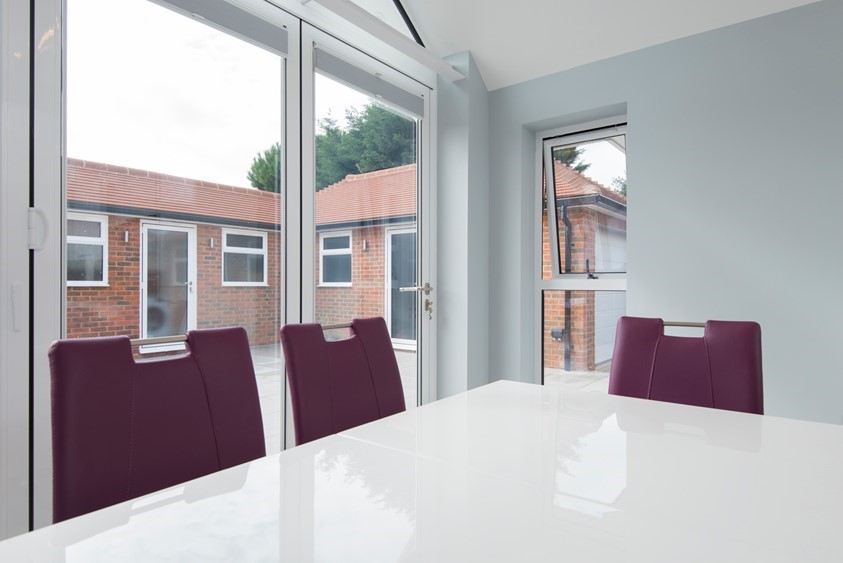 The installation of the Origin OB-72 Bi-folding Doors and OW-80 Windows have allowed the family to really take advantage of their south facing garden and kitchen, whilst creating a cohesive aesthetic throughout their home. They opted for the gable window in RAL shade 9910G to perfectly complement the new wood oak beam interiors of their home. Because of the styling, the Singh’s also chose to add two single doors, a set of French doors, two sets of 3 door OB-72 Bi-folds and a variety of OW-80 windows. All of the products installed were in RAL 9910G (patio white). These home improvements that the family uses every day have completely transformed their lives and have brought them so much closer together by encouraging more time spent with each other. Even their nearest and dearest have noticed the huge difference these installations have made and are incredibly impressed with the smart finish and efficient living style they have created. They are so happy they opted to invest in Origin and aluminium rather than UPVC, a decision that is reaffirmed in their minds each day.