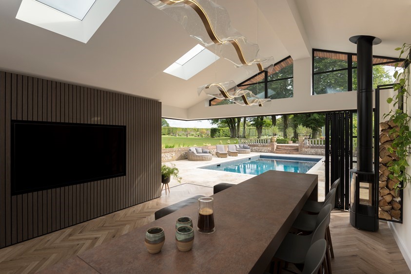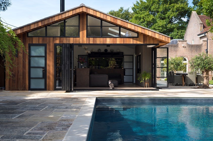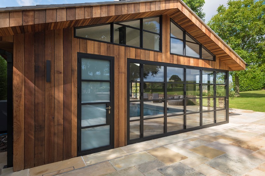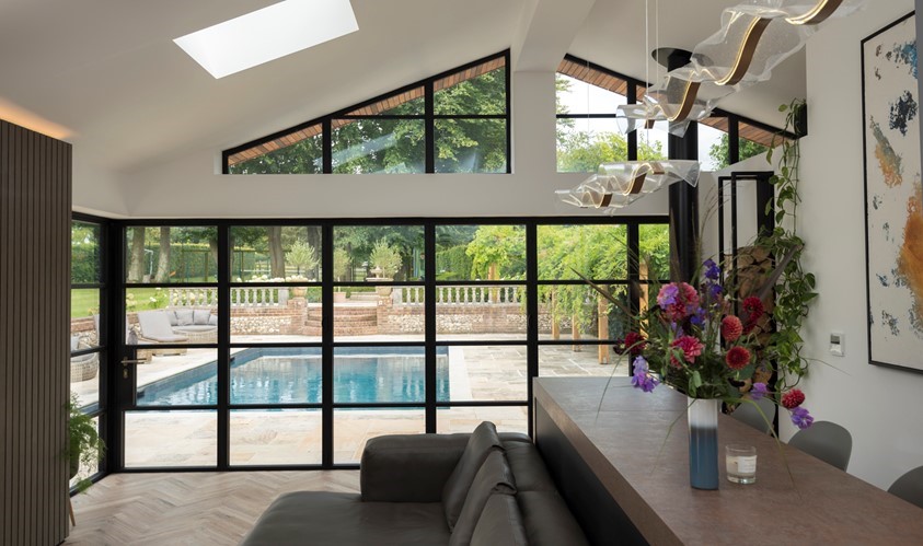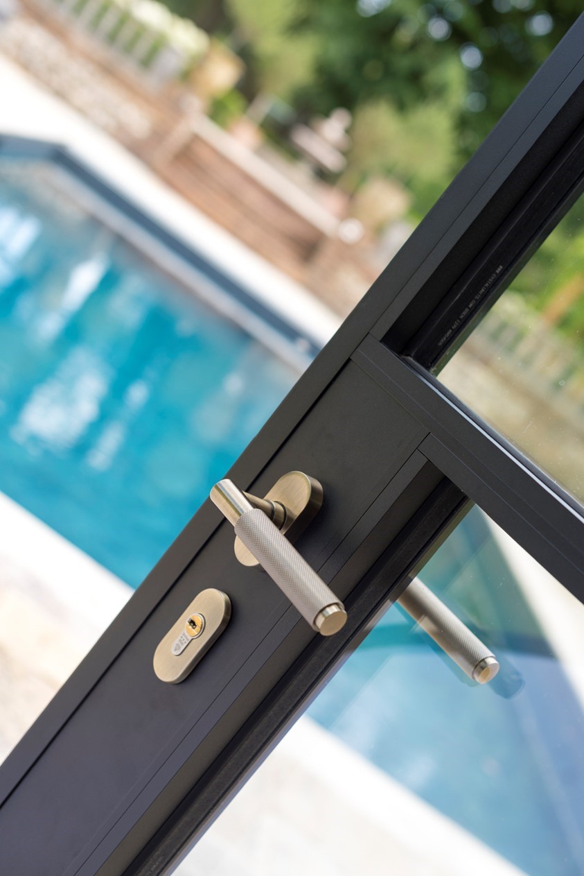 This busy family bought their home, set deep in the Hampshire countryside back in 2022. With their main property featuring a more traditional look, the homeowners were keen to add a touch of modern luxury to their grounds. Starting work with what was merely a shed and a run-down pool, the dreams of their breathtaking pool house felt far from reality. When the homeowners started to specify their project, they had visions of large, black, Soho style doors in which would frame the views of the pool and surrounding grounds. The homeowners were on the hunt for industrial style ‘Steel-look’ doors to contrast the natural beauty of their garden, however with a family of young kids it was important they didn’t just consider aesthetics but also function. Having already had Origin’s contemporary bi-folds installed in their main property, the couple had been impressed with how easy the doors were to operate and with features such as a ‘finger safe gasket’ felt confident in allowing their children use the doors as well. After a bit of a research, the couple came across Origin’s brand-new OB-36+ soho doors. Featuring the exact look they were after, this new product didn’t just tick the box on aesthetics but also allowed for all the practical elements of a bi-fold door, in which no other window and door company were offering…
