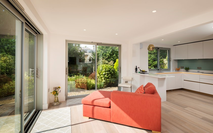 The practical benefits of the sliding doors were equally important. The slim sightlines allowed for a maximised view of the garden, while the smooth operation of the doors made it easy to adjust the space according to weather conditions. The configuration of the doors also worked well with the external landscaping, offering a seamless transition between the indoor and outdoor areas.