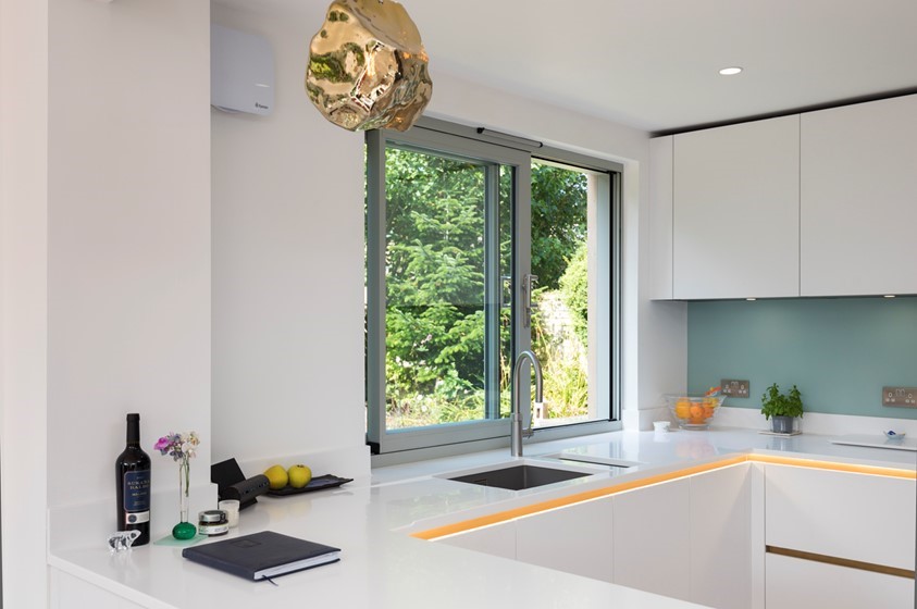 The renovation involved a complete reconfiguration of the downstairs living area, with new sliding doors and windows playing a key role in transforming the space. The homeowners selected the Agate Grey RAL7038M finish, which complemented the external walls and mullions of the house beautifully. This soft, subtle grey tone was a departure from the darker shades that are popular in modern design, and it provided a more harmonious and sympathetic interior colour scheme.