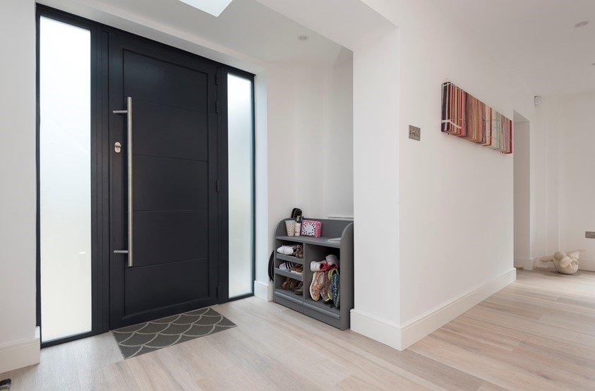 Having lived in their home for three years, the homeowners were eager to transform their space as part of a larger renovation project. The goal was to restructure the downstairs layout, incorporating a porch into the house, adding underfloor heating, and installing a new kitchen and utility area. Central to this transformation was the addition of Origin’s OS-29 Sliding Doors and OW-70 Windows, which would not only modernise the home but also enhance its connection with the garden.