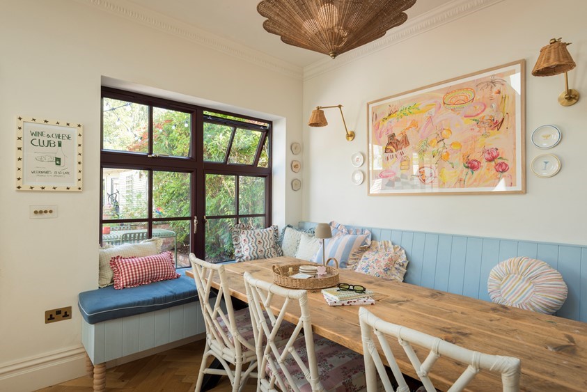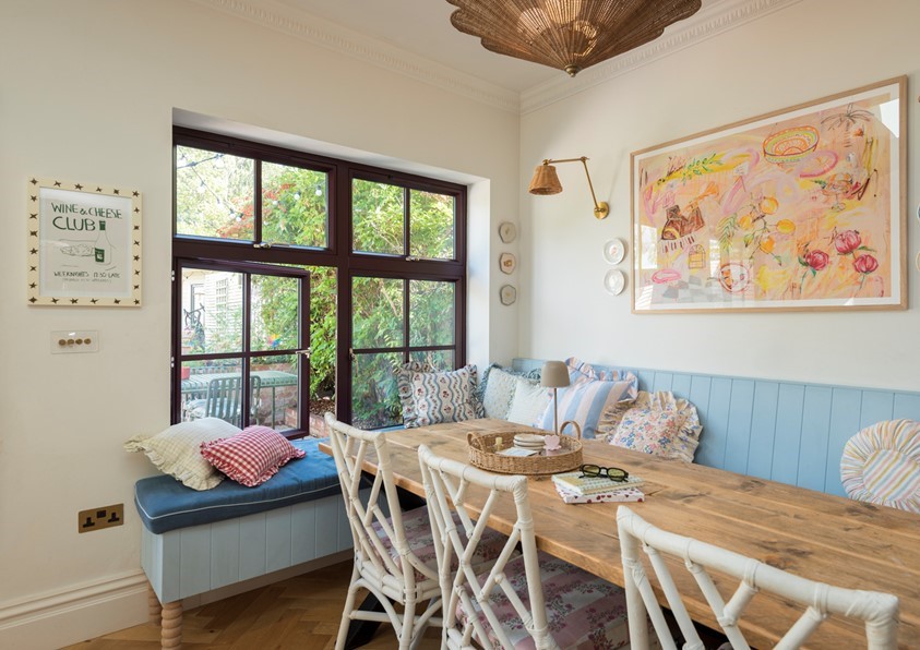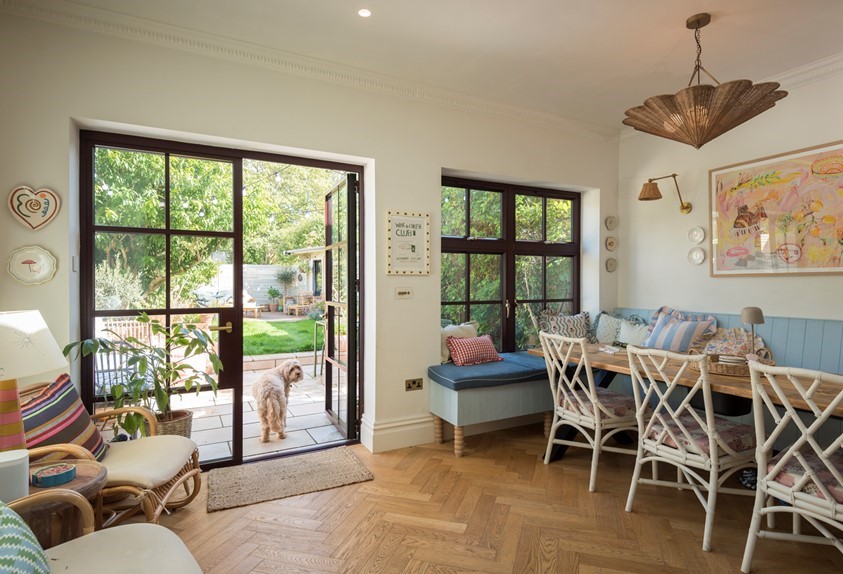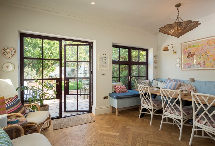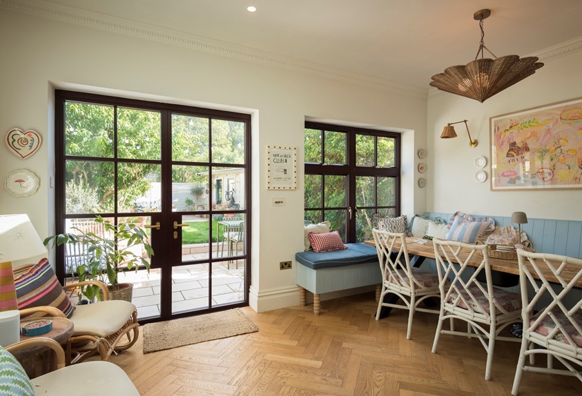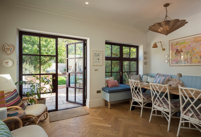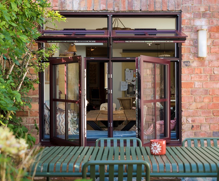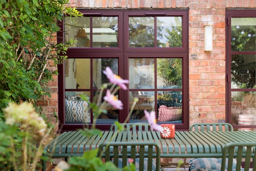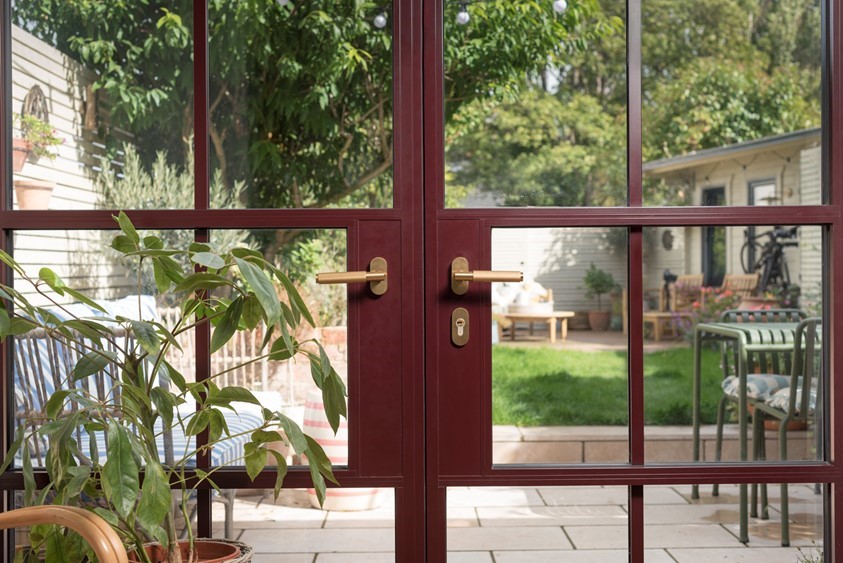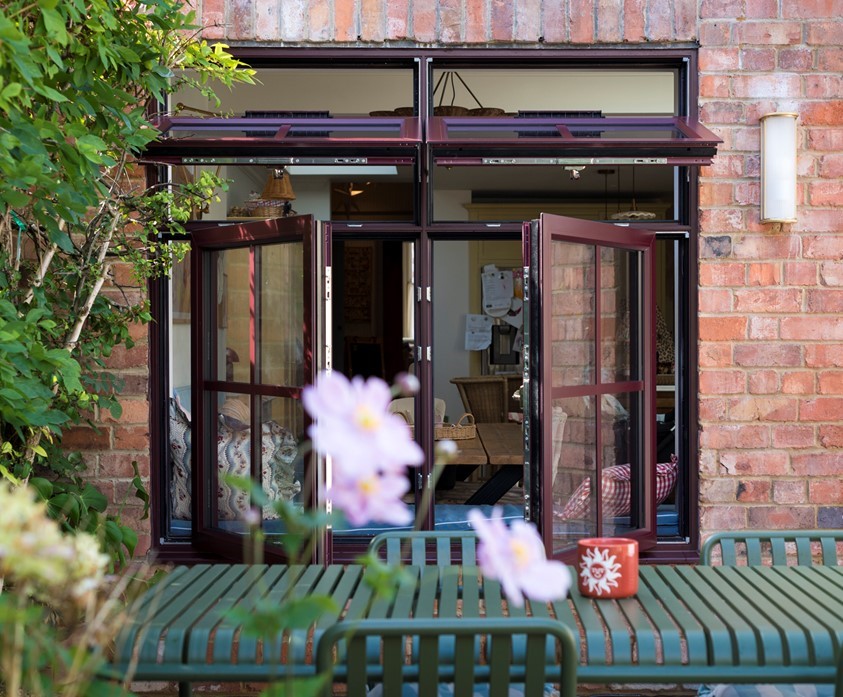 Claire’s goal was to have one feature that anchored the design throughout: bold, elegant external doors and windows that would both respect the Victorian architecture and breathe life and light into daily living. After exploring options, she chose Burgundy Soho external doors, paired with an expansive OW-80 casement window with Georgian bars applied. The richness of the burgundy tone adds warmth and contrast against the period brickwork, while the large casement window floods interiors with daylight. Georgian bars give the traditional feel, referring back to classic Victorian sash style without compromising on modern performance.