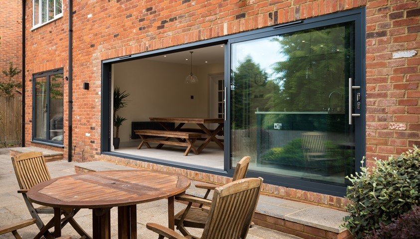 Mike and Emma came across Origin when their builders, Beechcroft, recommended their local Origin partner The Window Centre in Harrow. They wanted to replace their old outdated UPVC sliding doors. After viewing the Origin products and hearing about the numerous benefits of both Origin and aluminium, the couple decided on the OS-44 slimline Slider in the classic RAL colour 7016 Anthracite grey.