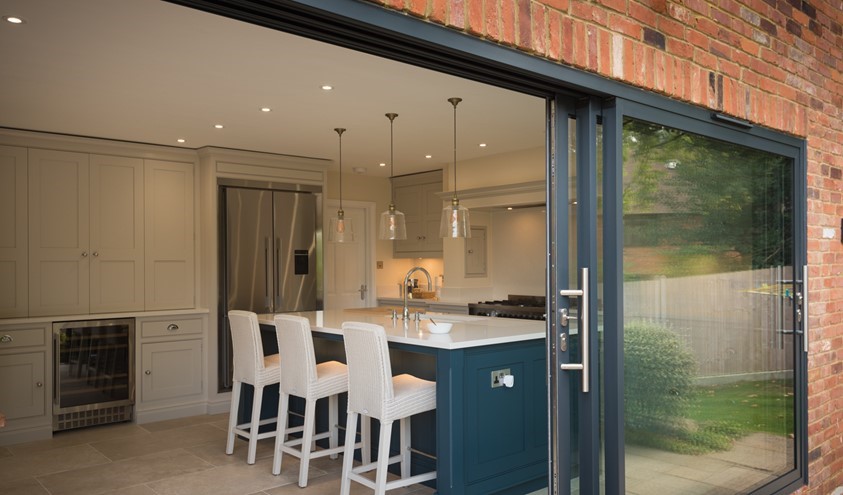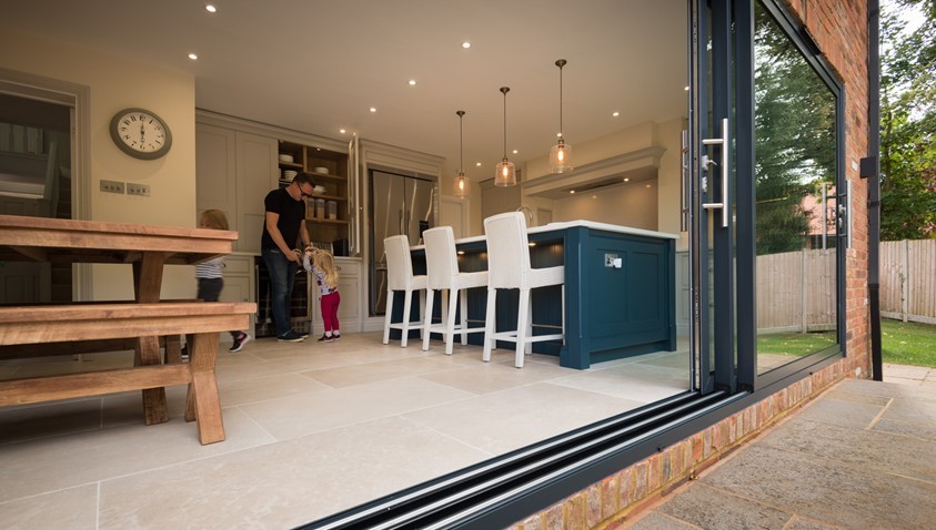 Mike and Emma decided to give their Buckinghamshire home a little bit of TLC by revamping their family kitchen. The aim was to create a space that they could enjoy all year round with their three children Benjamin, Annabelle and Harriet. Emma, who loves to cook up a storm in the kitchen said she wanted a space where she could do just this, yet still be with her family. Whether it’s in the winter when the children can sit up at the table colouring in or during the summer when they can run around in the garden. Thanks to their new kitchen and Origin Sliding Doors, both Emma and Mike can always keep an eye on them, giving them the ultimate peace of mind.