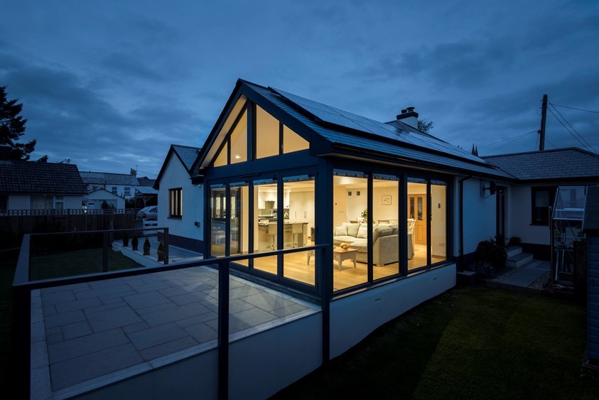 To complement the bi-folds, the Cole’s also opted to install fixed Origin Windows next to them with an Origin Gable above. All of the products that the couple opted for were installed by Prime Windows Devon. The fixed frames allow the natural light to enter all corners of the kitchen-lounge area whilst the mullions of the gable match perfectly with the sightlines of the bi-folds, giving a seamless look to the back of the house.