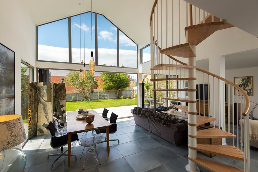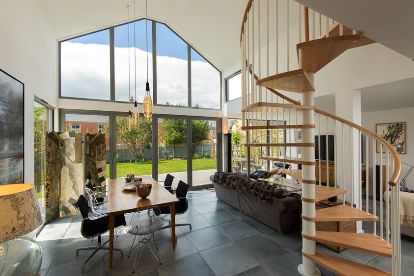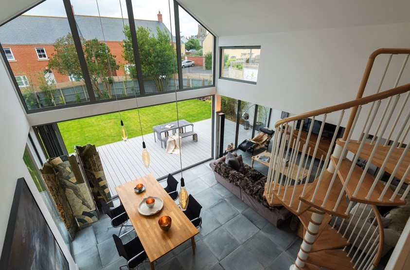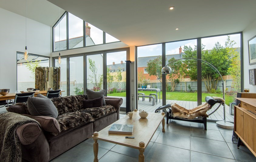 It is not only Origin doors that the Georges opted for - "There's a lovely, large gable, it runs the entire width of the house. It gives you the feeling of being in a cathedral, it's so grand and we had to find doors that would make the most of it." Anna recalled. In addition to the gable and bifolds, there are 4 fixed frames. These windows complement the bifolds as they mirror them in regards to size and colour, adding to the seamless, modern feel of the living/kitchen area of the property.
