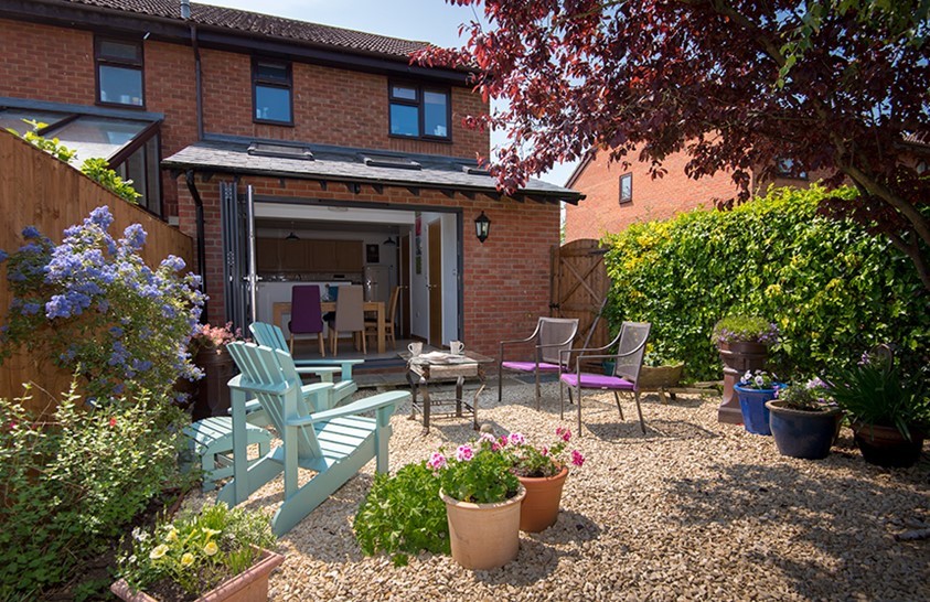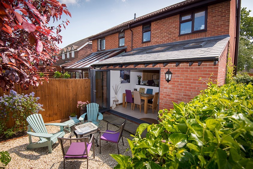 Extending 2.5m out at the rear of the house was always going to limit the Green’s garden space, something they didn’t want to compromise on. There was very little they could do in terms of extending their garden, with a garage in place behind it. The solution was bi-folding doors. Being able to completely open up the back of their home would enable them to seamlessly combine the interior and exterior, giving the impression of a much larger garden and social space.