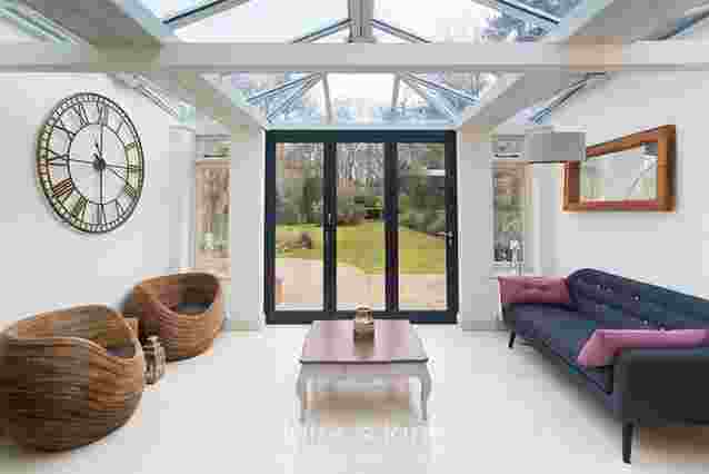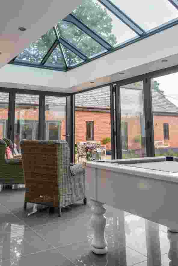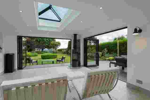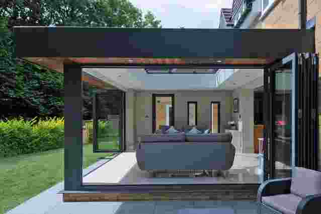 Abode finished this amzing garden room with Origin's OB-49 bi-folding doors.