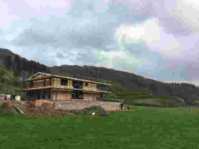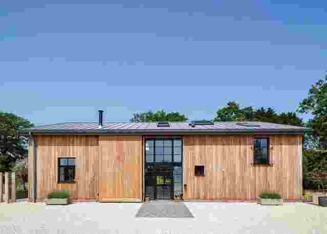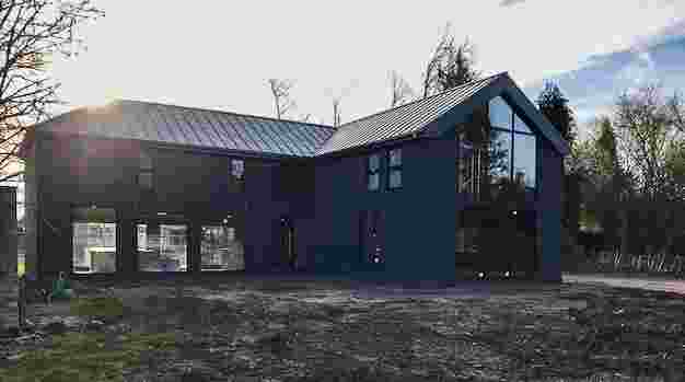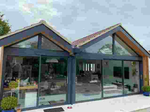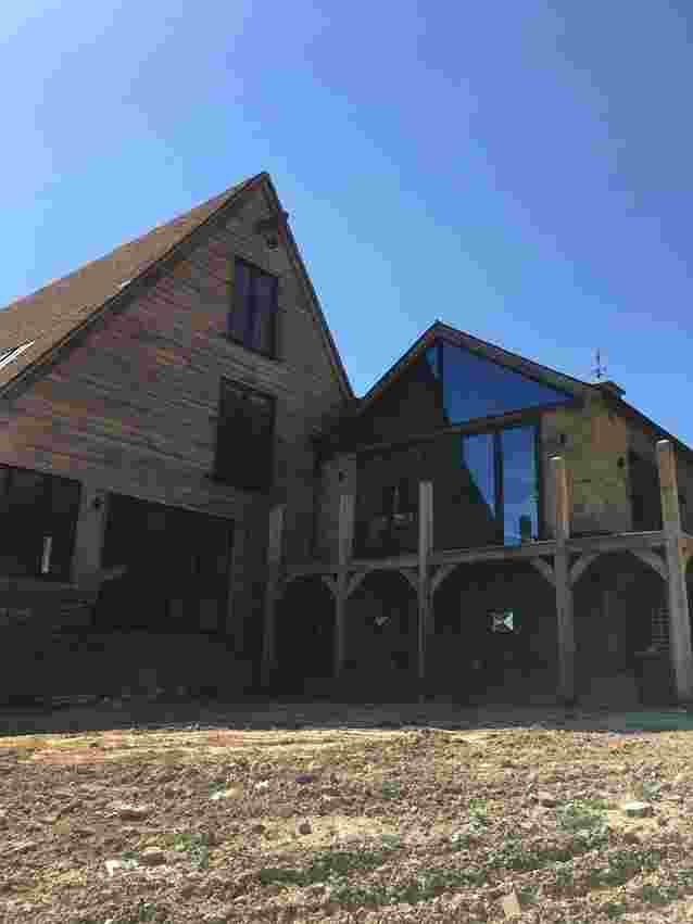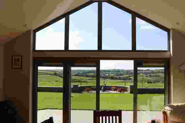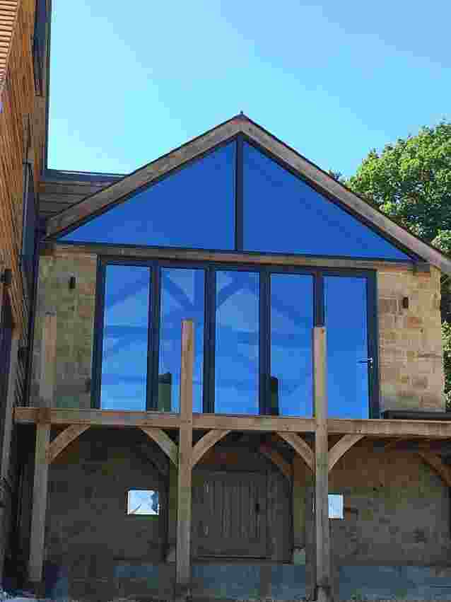 This beautiful warm barn hosting an array of Origin Windows and Gables. The installation team from Lux have done an outstanding job with their perfect install of the vast gable-piece aligned over the door and window set below.