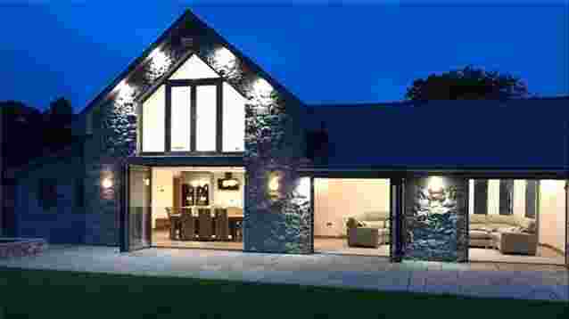 A spectacular 5 bed barn conversion in Devon. Featuring 3 x Origin aluminium bi-folding doors to the front of the barn, and a set of Origin French Doors, in the centre of a gable frame for the master bedroom. All in RAL 9007, which complements the external stonework. Finishing off a truly stunning build.