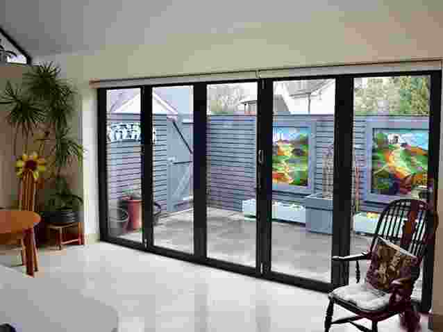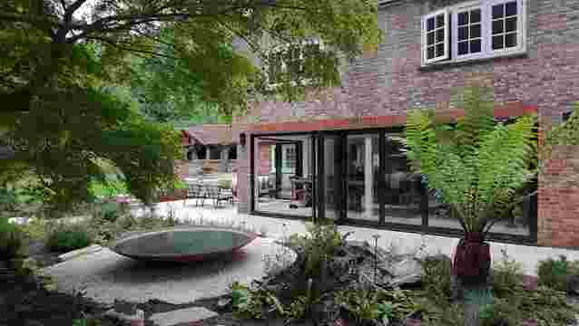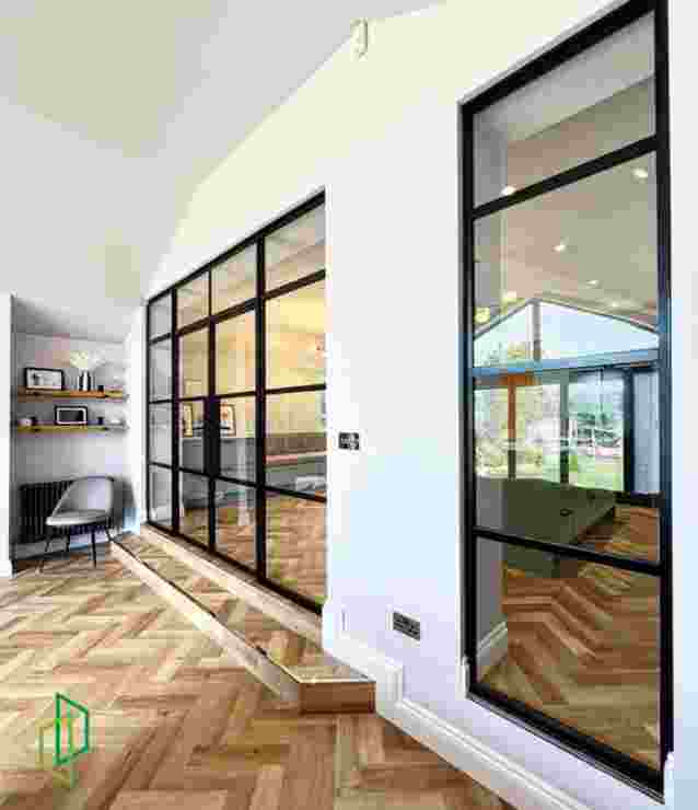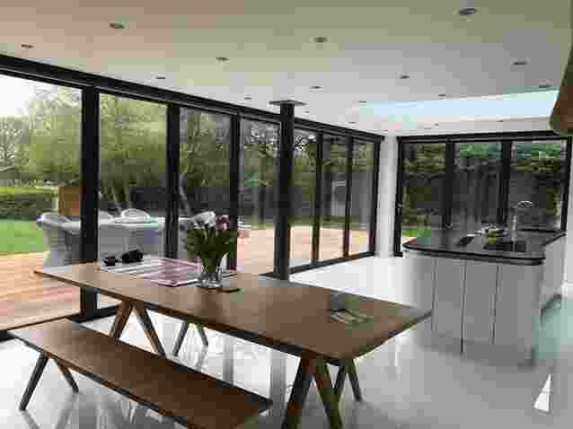A Lovely installation from Goldseal that incorporates, OW-70 Windows, Bifolds, Artisan Slider OS-20 finished in Jet Black.