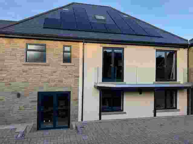 This unique housing development hosts a display of Origin products, with numerous OS-29 Inline Sliders, lots of OW-80 Windows and a Front Door Frame with a mid-rail and no panel; all in the increasingly popular Jet Black - RAL 9005, in a Matt finish.