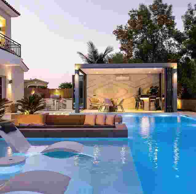 The new doors open up the living space onto the pool area and to the stunning newly landscaped garden - flooding their home with light and creating an outdoor feel - while making the most of the surrounding views of the 11th fairway of the ‘Earth Course’ at Jumeirah Golf Estates.