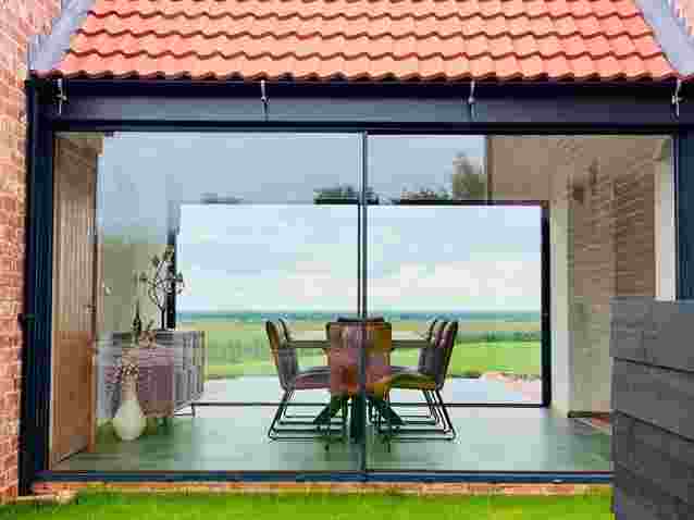 The install features 2x OS-29 three-pane Sliding Doors, with a gable-ended window above one of the sets which will be perfect for watch the sunsets.