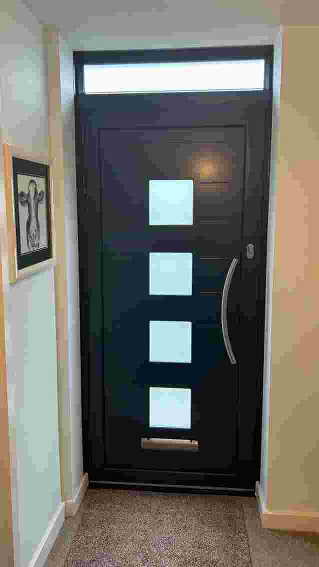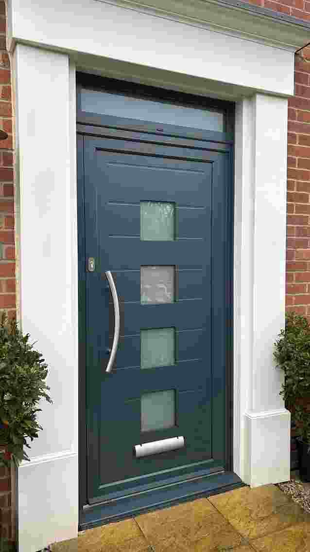 This property received a massive upgrade with our Kensington GE01 Panel in 7016M, Anthracite Grey, with a curved handle and a letterbox. The install is immaculate, from our Premium Partner Trade Window Supplies.