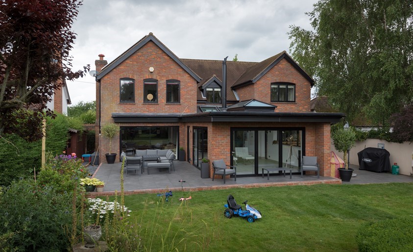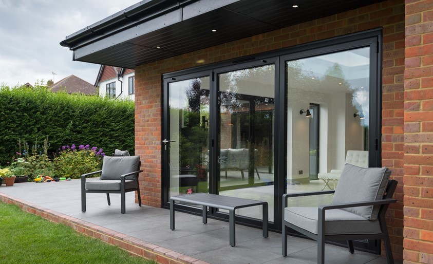 Origin OB-72 Bi-fold Doors, OW-70 Windows and OS-20 Sliding Doors Complete this Cosy Family Home