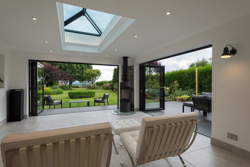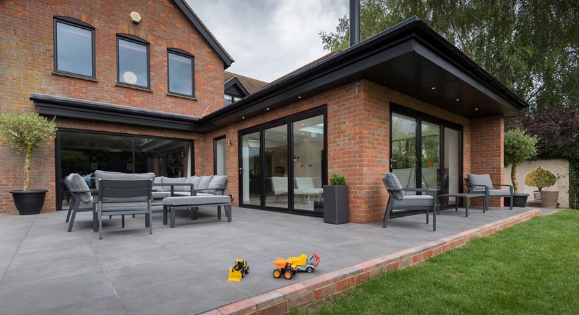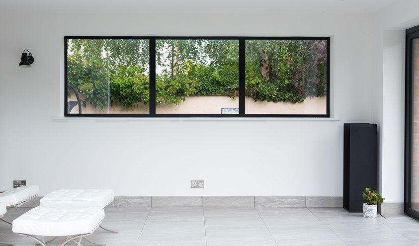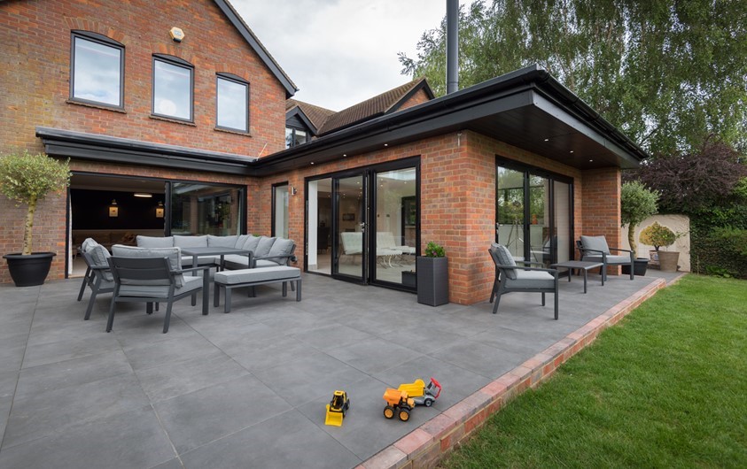 The family chose both the Origin OB-72 Bi-Fold Door and the Origin OS-20 Sliding Door, which they claim has allowed them to embrace the new outdoor living style that they were craving, as well as flooding the home with natural light. They were pleasantly surprised with the difference the doors made. The family made the decision to have the doors open out onto a patio rather than the grass to prevent any muddy footprints coming into the home. Dan commented on how the doors were ‘extremely low maintenance and simple to operate.’ Alongside their doors, the family chose to include a range of OW-70 Origin Windows to add a consitent styling throughout their lovely home, all in RAL shade 9005M.