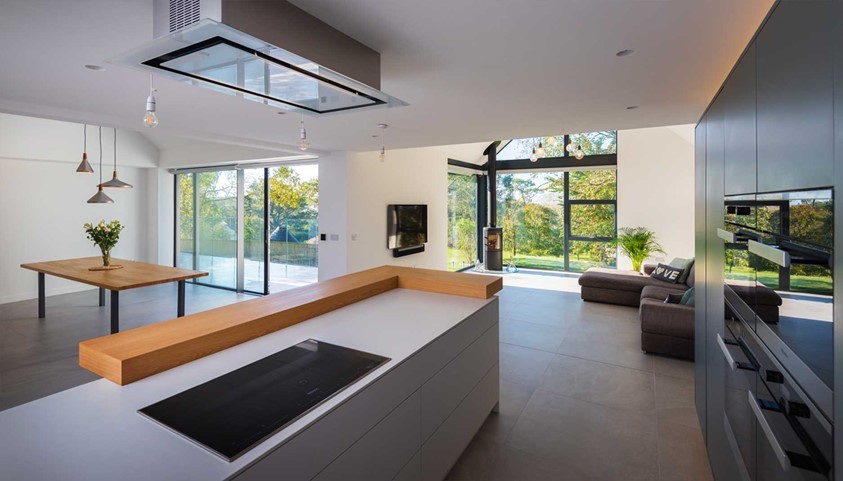 The Bakers began their self-build project in 2017 with the intention of creating a modern home that framed the beautiful views of the picturesque Cornwall countryside. Incorporating glass into the home was essential to making the most of the scenery and letting in as much natural light as possible.