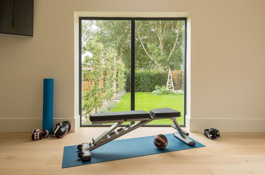 Once installed, the couple loved the look of their finished pool room, with the doors and windows being the perfect final touch. They noticed the benefits of the doors straight away, and particularly love how the light bounces off the walls and the water, creating a further illusion of space throughout the room and highlighting its different areas like the sectioned off gym space.