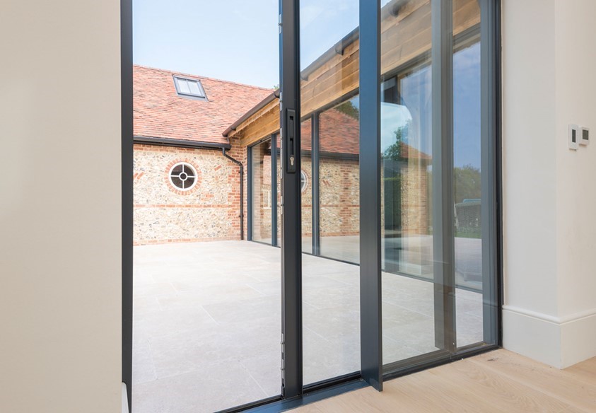 With their expectations exceeded, they opted for a large four-door set to stretch across the back of the pool house, as well as two two-door sets, that would be installed in the gym area, adjacent to one another, creating a light and airy dual aspect.