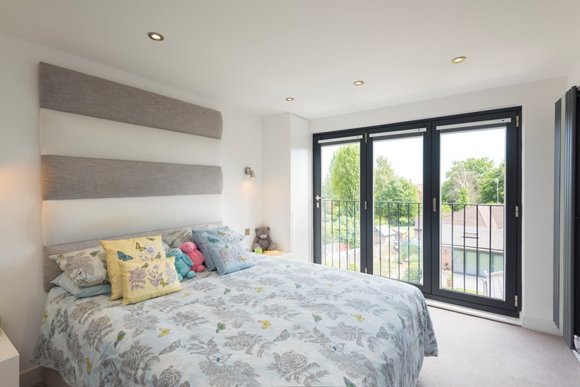 The Alexander's Origin experience didn't stop there. The new bedroom up on the third floor also has Origin Bifolds, allowing the couple to enjoy the fantastic views across North London. With no balcony, the doors open up completely, but thanks to their narrow design there are no restrictions on space inside the room as a result.